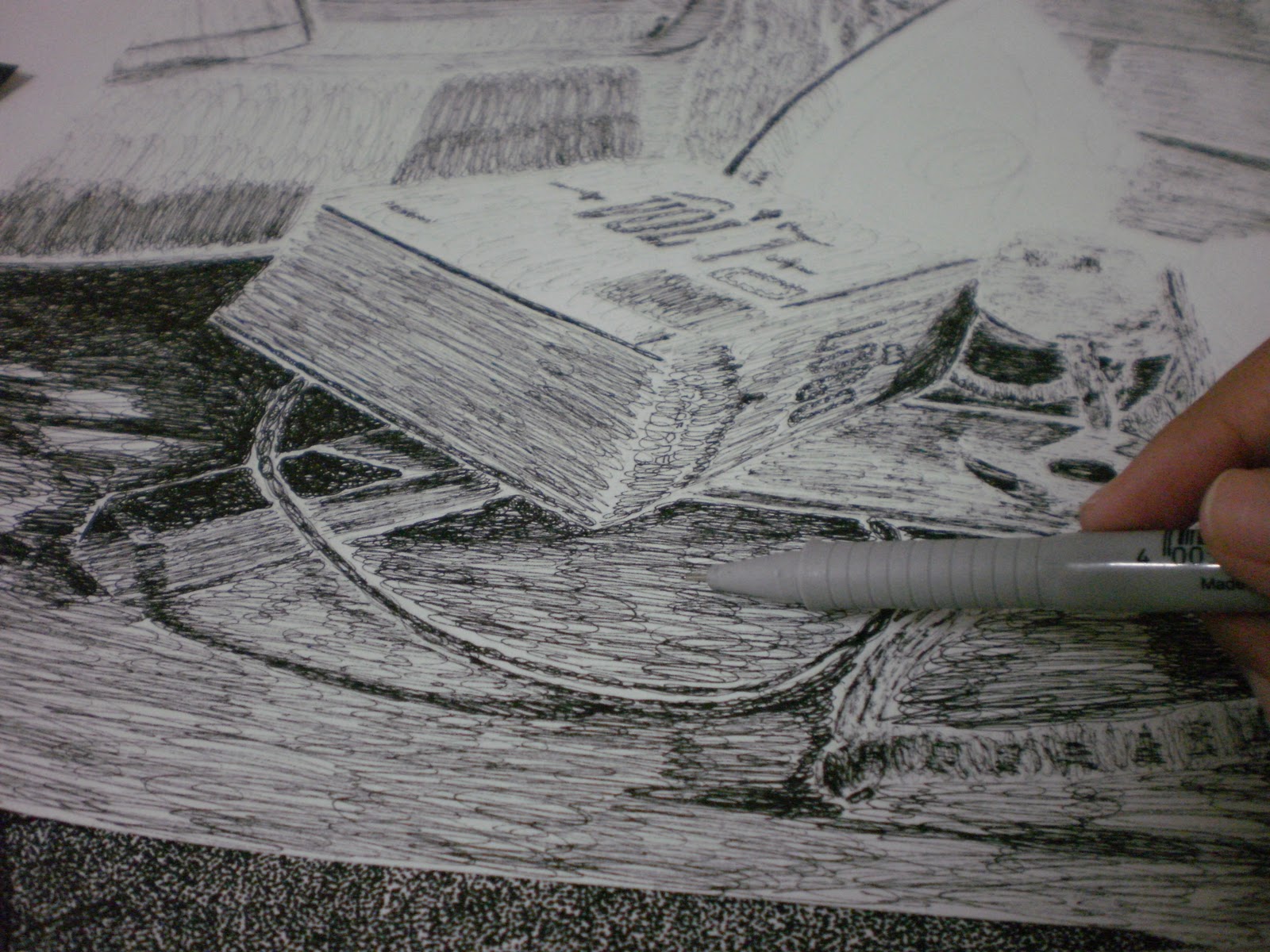 e. Teknik Scumbling (melembut) – menggunakan lapisan nipis warna gelap di atas
